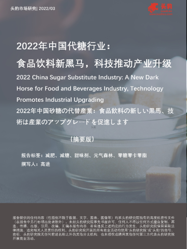 【头豹研究院】【20220517】2022年中国代糖行业:食品饮料新黑马,科技推动产业升级-10页 行业研究