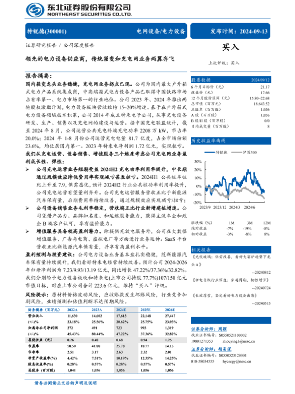 【东北证券】【20240913】领先的电力设备供应商,传统箱变和充电网业务两翼齐飞-34页 行业研究