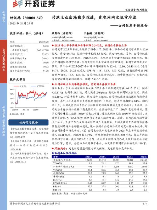 【开源证券】【20250829】特锐德-传统主业出海稳步推进,充电网同比扭亏为盈-4页 证券期货研究报告