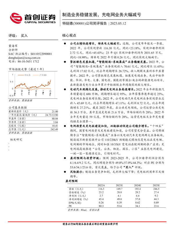 【首创证券】【20230512】特锐德(300001)公司简评报告-4页 行业研究