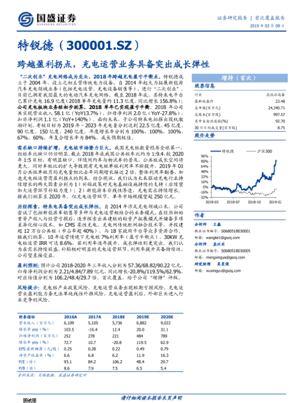 【国盛证券】【20190308】跨越盈利拐点,充电运营业务具备突出成长弹性-24页 行业研究