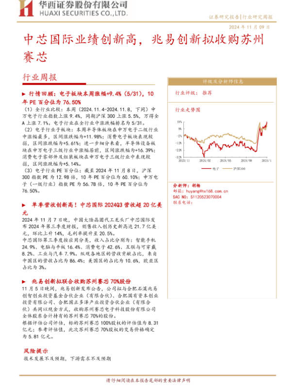 【华西证券】【20241109】20241109-华西证券-电子行业周报:中芯国际业绩创新高,兆易创新拟收购苏州赛芯-15页 行业研究