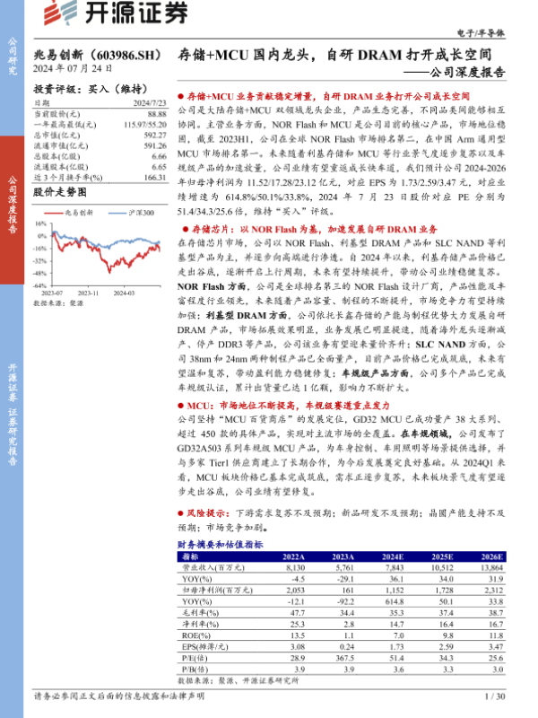 【开源证券】【20240723】存储+MCU国内龙头,自研DRAM打开成长空间-30页 公司研究