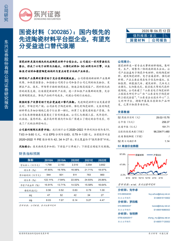【东兴证券】【20200612】国瓷材料:国内领先的先进陶瓷材料平台型企业,有望充分受益进口替代浪潮-26页 行业研究