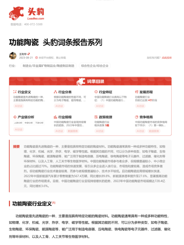 【头豹研究院】【20230821】功能陶瓷 头豹词条报告系列-18页 行业研究