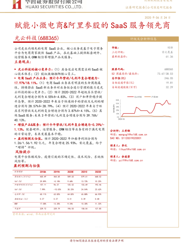 【华西证券】【20200624】光云科技-688365.SH-赋能小微电商&阿里参股的SaaS服务领先商-32页 行业研究