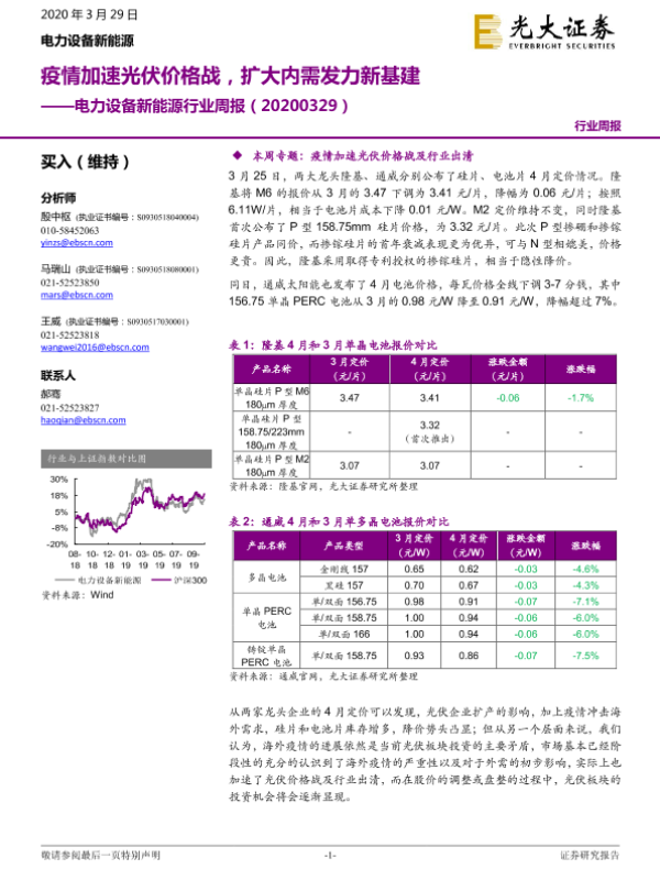 【光大证券】【20200329】电力设备新能源行业周报:疫情加速光伏价格战,扩大内需发力新基建-34页 行业研究