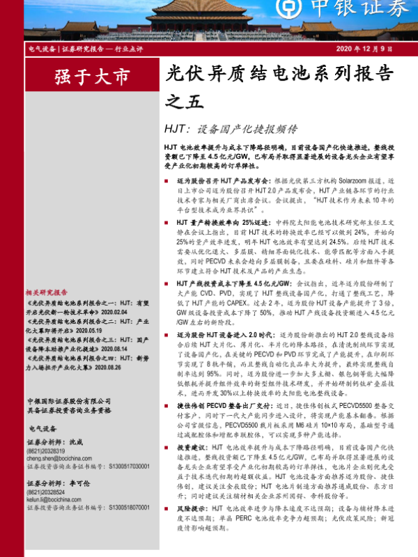 【中银证券】【20201209】光伏异质结电池系列报告之五:HJT:设备国产化捷报频传-4页 行业研究