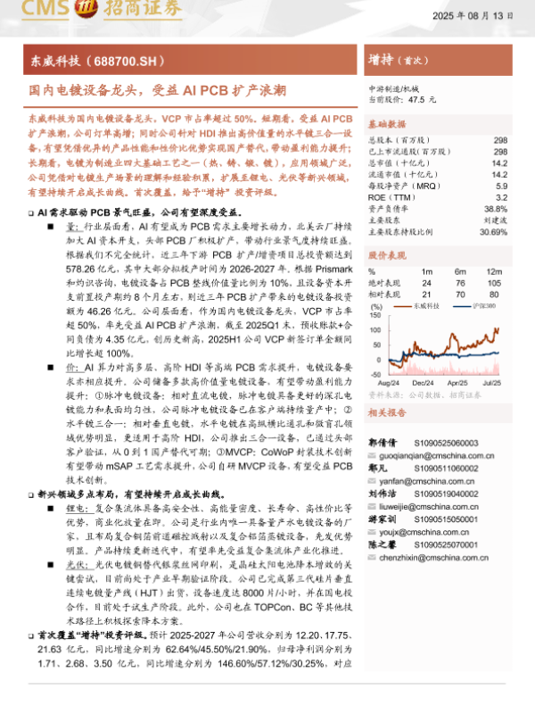 【招商证券股份有限公司】【202508】东威科技(688700)国内电镀设备龙头,受益AIPCB扩产浪潮-250813-招商证券-32页.pdf-32页 公司研究