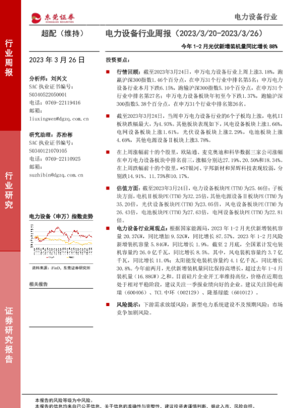 【东莞证券】【20230326】20230326-东莞证券-电力设备行业周报:今年1-2月光伏新增装机量同比增长88%-12页 行业研究