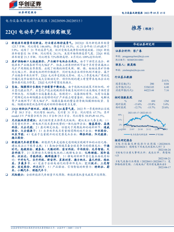 【华创证券】【20220515】20220515-华创证券-电力设备及新能源行业周报:22Q1电动车产业链供需概览-21页 行业研究