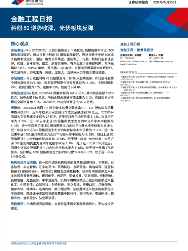 【国信证券】【20230525】金融工程日报:科创50逆势收涨,光伏板块反弹-16页 行业研究