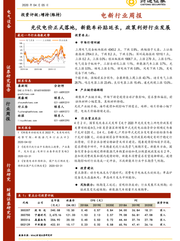 【财通证券】【20200405】20200405-财通证券-电新行业周报:光伏电价正式落地,新能车补贴延长,政策利好行业发展-11页 行业研究