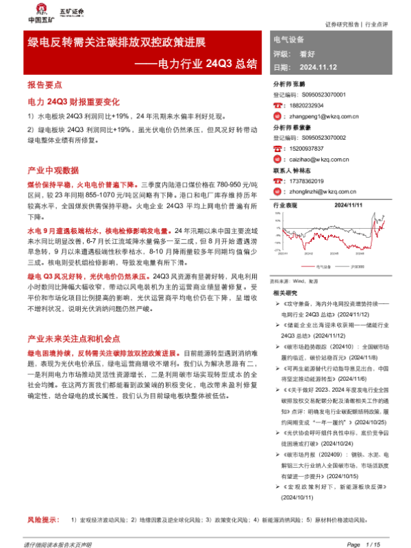 【五矿证券】【20241112】24Q3总结:绿电反转需关注碳排放双控政策进展-15页 行业研究