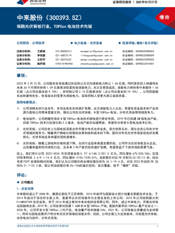 【国信证券】【20230227】中来股份(300393)领跑光伏背板行业,TOPCon电池技术先驱-21页 行业研究