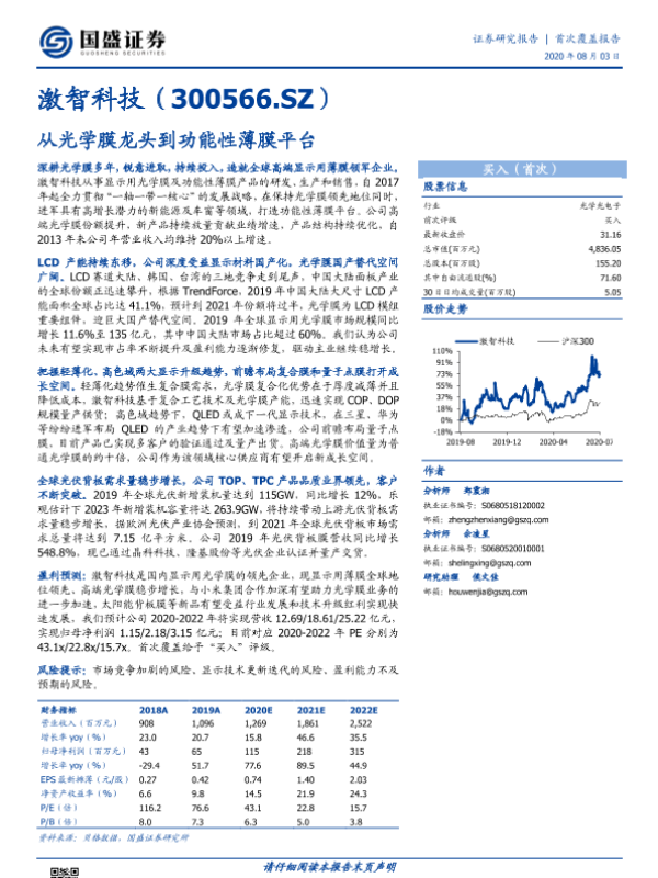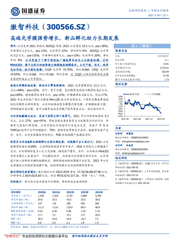 【国盛证券】【20220422】激智科技-高端光学膜强势增长,新品孵化助力长期发展-3页 行业研究
