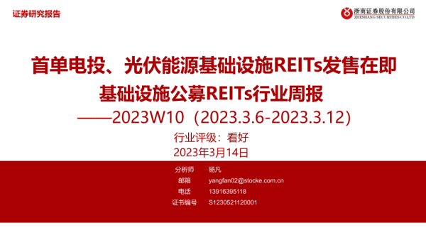 【浙商证券】【20230314】基础设施公募REITs行业周报:首单电投、光伏能源基础设施REITs发售在即-17页 行业研究