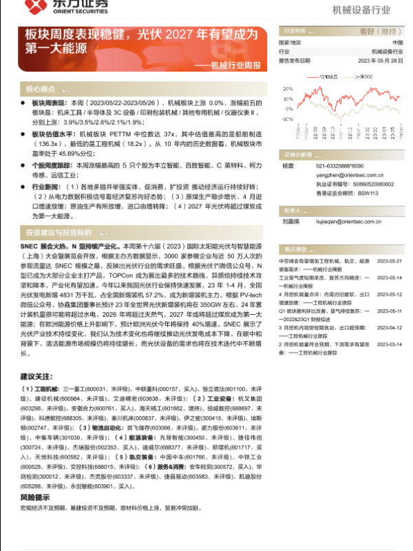 【东方证券】【20230528】20230528-东方证券-机械行业周报:板块周度表现稳健,光伏2027年有望成为第一大能源-25页 行业研究