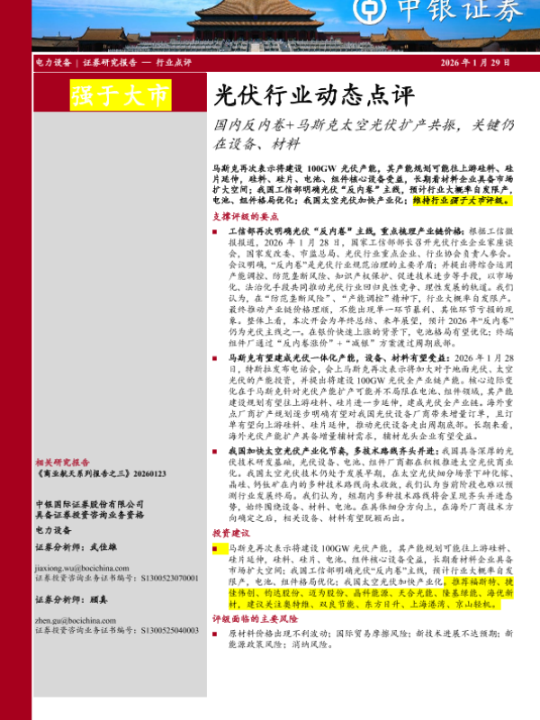 【中银证券】【202601】光伏行业动态点评_国内反内卷+马斯克太空光伏扩产共振_关键仍在设备_材料-3页 证券期货研究报告