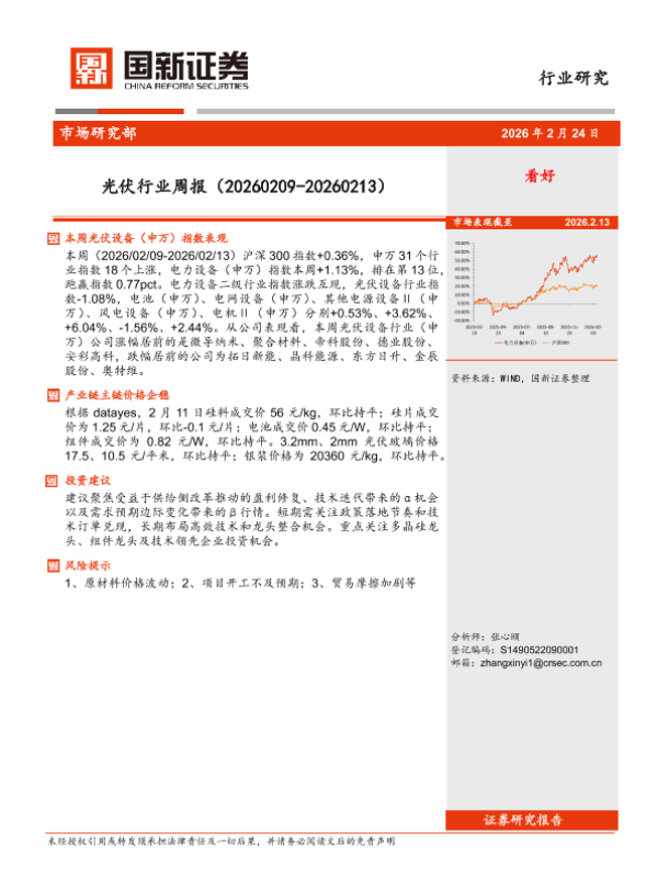 【国新证券】【202602】光伏行业周报(20260209-20260213)-9页 证券期货研究报告