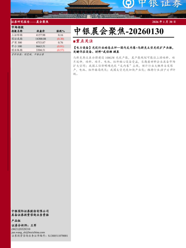 【中银证券】【202601】中银晨会聚焦-20260130-5页 证券期货研究报告