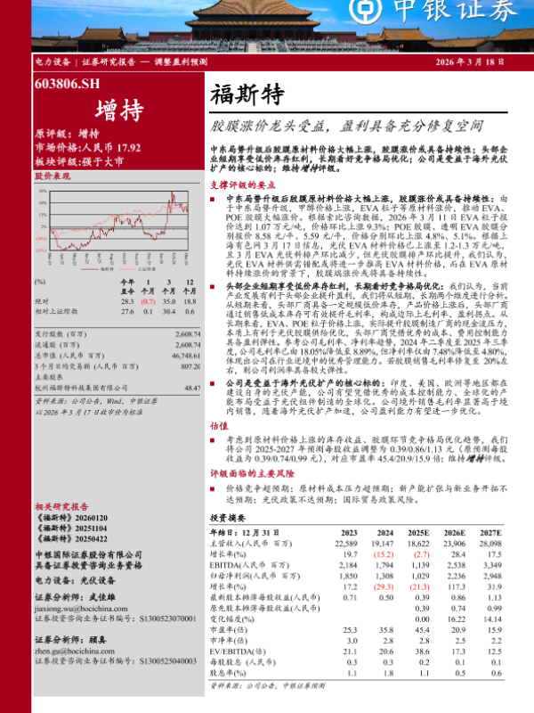 【中银证券】【202603】胶膜涨价龙头受益,盈利具备充分修复空间-4页 证券期货研究报告