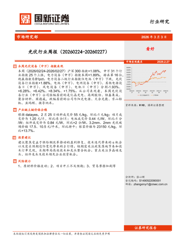 【国新证券】【202603】光伏行业周报(20260224-20260227)-9页 证券期货研究报告