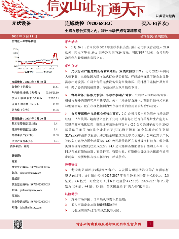 【山西证券】【202603】光伏设备 连城数控(920368.BJ) 买入-B(首次)-5页 证券期货研究报告