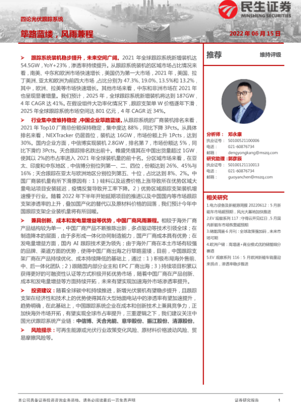 【民生证券】【20220615】四论光伏跟踪系统:筚路蓝缕,风雨兼程-14页 行业研究