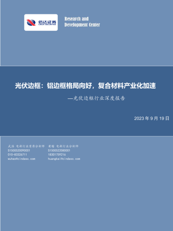 【信达证券】【20230919】光伏边框:铝边框格局向好,复合材料产业化加速-30页 行业研究