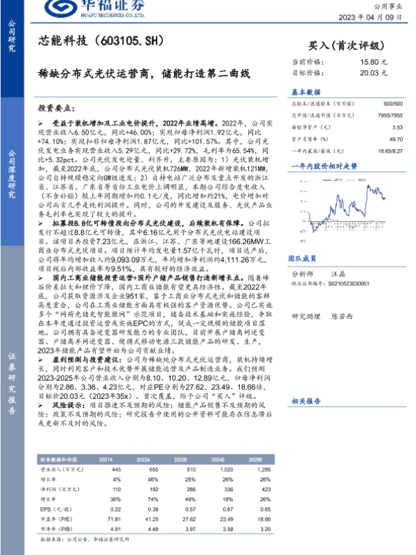 【华福证券】【20230409】稀缺分布式光伏运营商,储能打造第二曲线-20页 行业研究