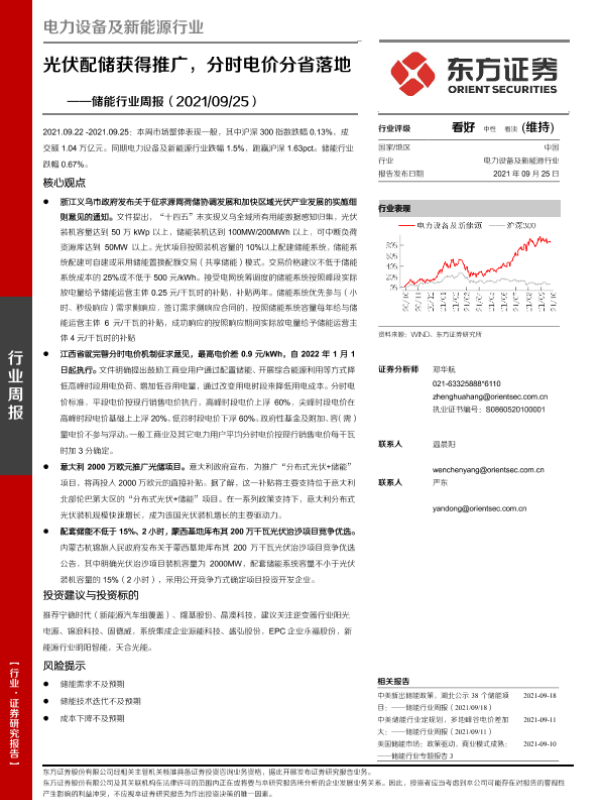 【东方证券】【20210925】储能行业周报:光伏配储获得推广,分时电价分省落地-15页 行业研究