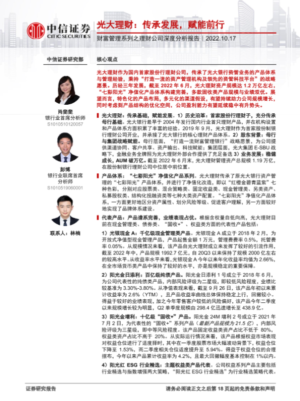 【中信证券】【20221017】银行业财富管理系列之理财公司深度分析报告:光大理财,传承发展,赋能前行-19页 行业研究