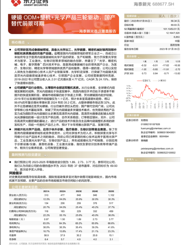 【东方证券】【20230705】海泰新光首次覆盖报告:硬镜ODM+整机+光学产品三轮驱动,国产替代前景可期-44页 行业研究