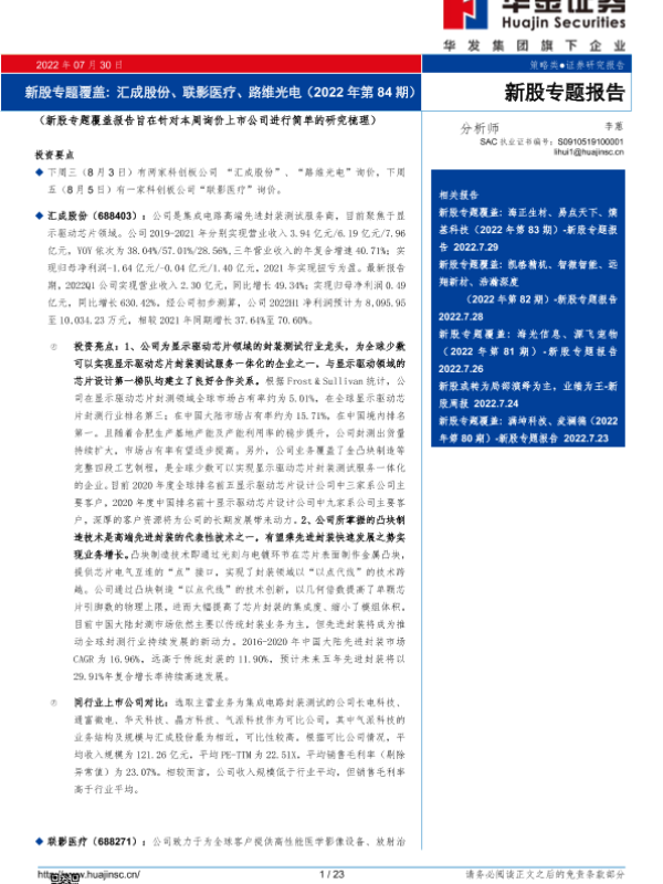 【华金证券】【20220730】新股专题覆盖:汇成股份、联影医疗、路维光电(2022年第84期)-23页 行业研究