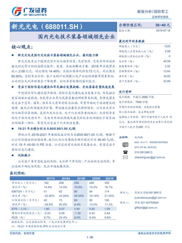 【广发证券】【20190718】新光光电(688011.SH):国内光电技术装备领域领先企业-25页 行业研究