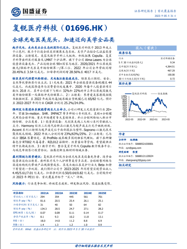 【国盛证券】【20230531】复锐医疗科技(01696)全球光电医美龙头,加速迈向美学全品类-35页 行业研究