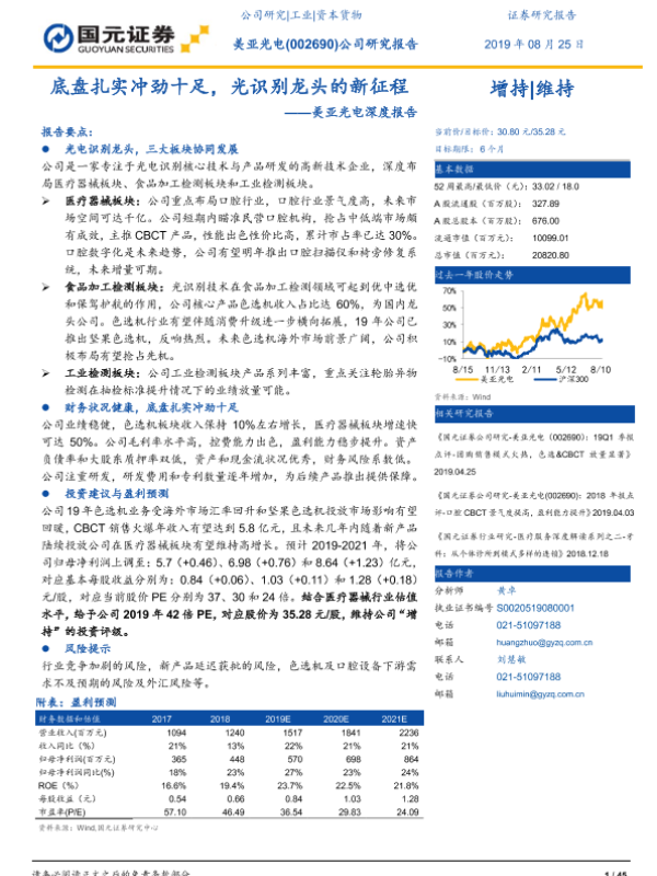 【国元证券】【20190825】美亚光电深度报告:底盘扎实冲劲十足,光识别龙头的新征程-45页 行业研究