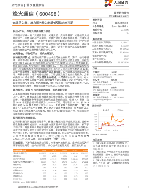 【天风证券】【20250809】烽火通信-光通信为基,算力服务作为新增长引擎未来可期-32页 证券期货研究报告