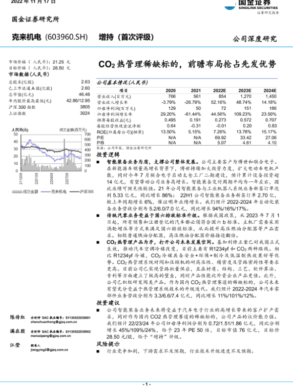 【国金证券】【20221117】20221117-国金证券-克来机电-603960.SH-CO2热管理稀缺标的,前瞻布局抢占先发优势-19页 行业研究