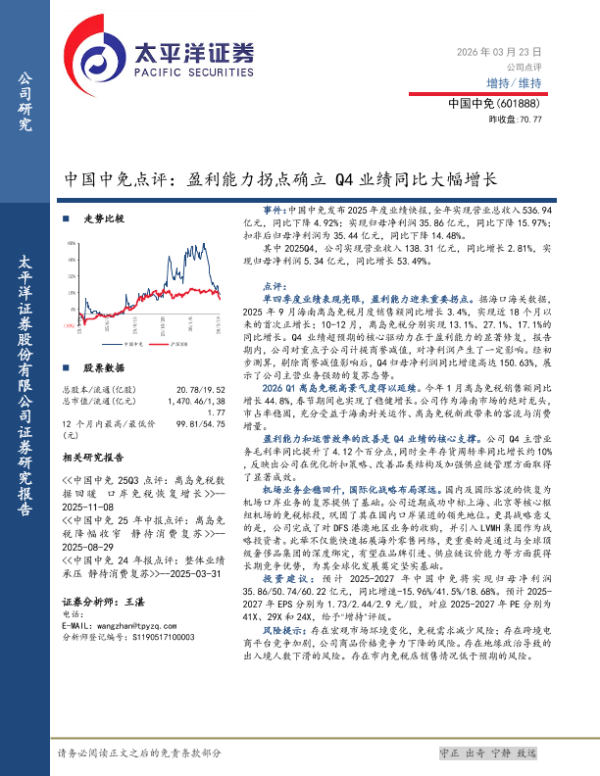 【太平洋证券】【2025】中国中免点评:盈利能力拐点确立 Q4业绩同比大幅增长-5页 公司研究