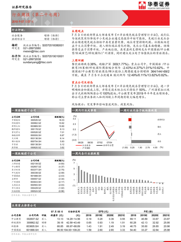 【华泰证券】【20190707】社会服务行业周报(第二十七周)-10页 行业研究