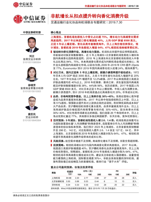 【中信证券】【20190730】交通运输行业化妆品和机场联合专题研究:非航增长从扣点提升转向香化消费升级-28页 行业研究