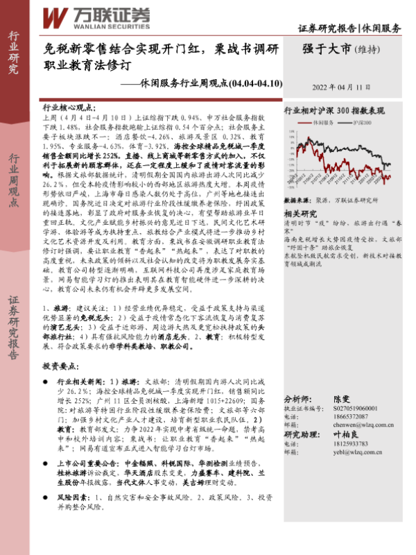 【万联证券】【20220411】休闲服务行业周观点:免税新零售结合实现开门红,栗战书调研职业教育法修订-10页 行业研究