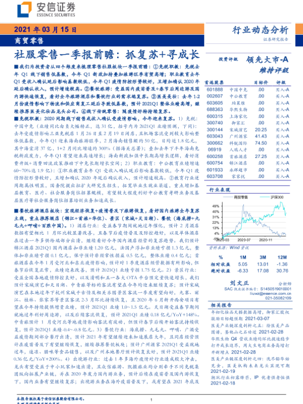 【安信证券】【20210315】社服零售一季报前瞻:抓复苏+寻成长-11页 行业研究