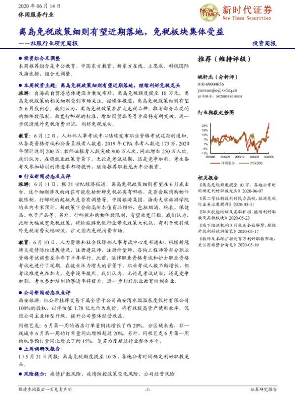 【新时代证券】【20200614】社服行业研究周报:离岛免税政策细则有望近期落地,免税板块集体受益-17页 行业研究