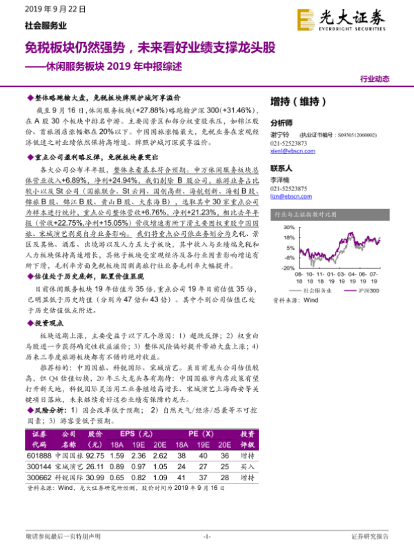 【光大证券】【20190922】休闲服务板块2019年中报综述:免税板块仍然强势,未来看好业绩支撑龙头股-13页 行业研究