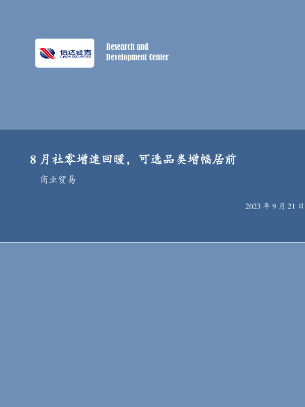 【信达证券】【20230921】社服零售双周专题:8月社零增速回暖,可选品类增幅居前-24页 行业研究