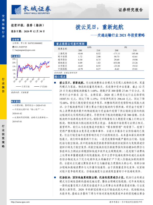 【长城证券】【20201230】交通运输行业2021年投资策略:拨云见日,重新起航-31页 行业研究