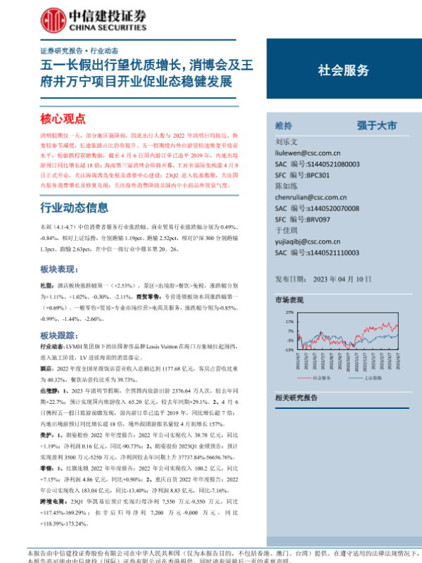 【中信建投证券】【20230410】社会服务行业:五一长假出行望优质增长,消博会及王府井万宁项目开业促业态稳健发展-28页 行业研究